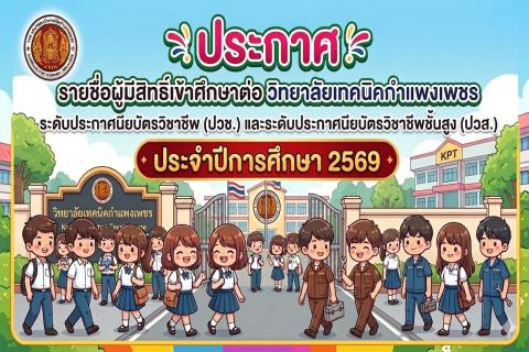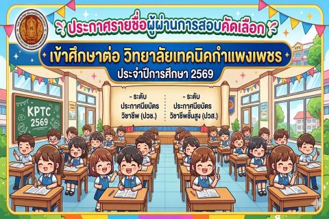 ประกาศรายชื่อผู้มีสิทธิ์เข้าศึกษาต่อ ประจำปีการศึกษา 2569 อ่านต่อ